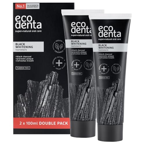 Ecodenta Charcoal Toothpaste, Teeth Whitening Toothpaste I Naturally Whitens Teeth and Removes Plaque I Black Natural Toothpaste Fluoride Free, Set 2x100ml
