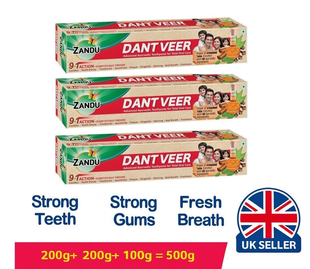 500g Zandu Dantveer Ayurvedic Neem Clove Herbal Toothpaste Fluoride Free Paste