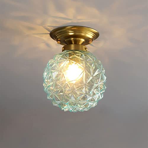 Glass Ceiling Light Fixture Crystal Glass Globe Ceiling Light American Rustic Vintage Semi Flush Mount Ceiling Lighting Fixture 1 Light for Kitchen Island Corridor Hallway Closet Made in China