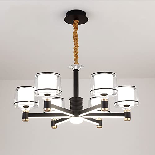 HLTYGWX Chandelier with Clear Acrylic Shade Black, Adjustable Pendant Light LED Flush Mount Ceiling Lighting Fixtures for Kitchen Bedroom Living Room(8 Lights,80x37cm(31x15inch))