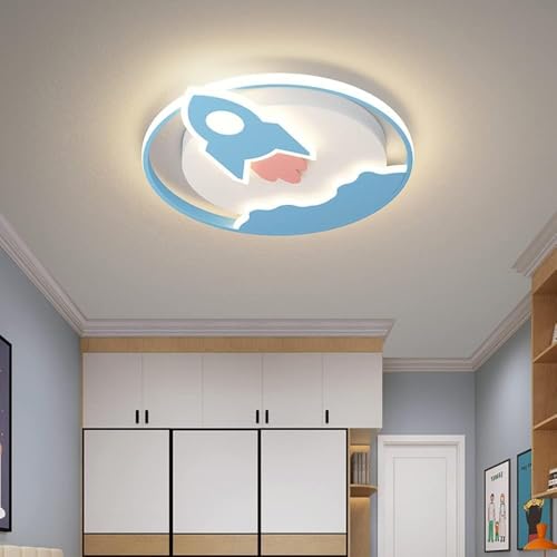 WFRUEDWC Macaron Round LED Ceiling Light Modern Wrought Iron Ceiling Lamps Semi Flush Mount Ceiling Lighting for Children's Room Bedroom Hallway Blue+Cool White-40cm 28W