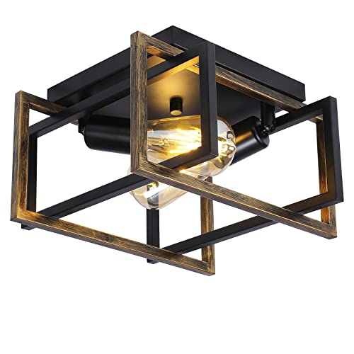 2 Lights Vintage Ceiling Lamp with Wood Grain Finish, Black Rustic Farmhouse Ceiling Light Fixture Semi Flush Mount Ceiling Lighting for Farmhouse Bedroom Kitchen Dining Room Hallway Made in China