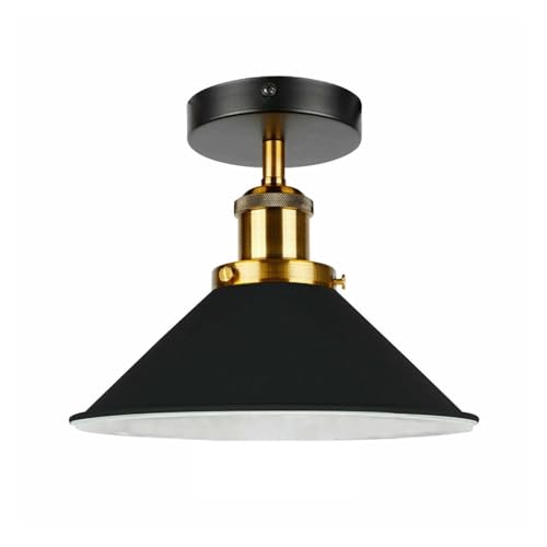 LEDSone Modern Flush Mount Metal Ceiling Lighting LED Lights, Semi Flush Light Fitting Pendant Light Lamp Chandelier Metal 22cm Cone Light Shade for Hall, Living Room. (Black Inner White Without Bulb)