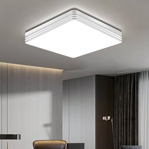 Taoellen LED Ceiling Lights for Living Room - 48W Square Ceiling Light, 6500K 4320LM 240W Equivalent Silver Edge Flush Ceiling Lights, Cold White Ceiling Light for Bedroom, Hallway, Kitchen, Cloakroom