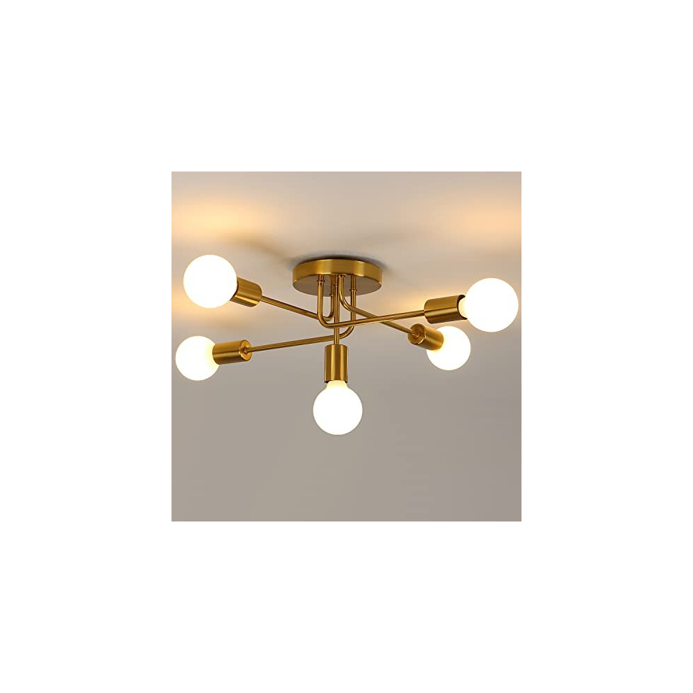 AUA Modern Sputnik Chandelier Ceiling Light, 5 Lights Golden Semi Flush Mount Ceiling Lights, Adjustable Ceiling Light Fitting for Living Room Kitchen Dining Room Farmhouse Hallway
