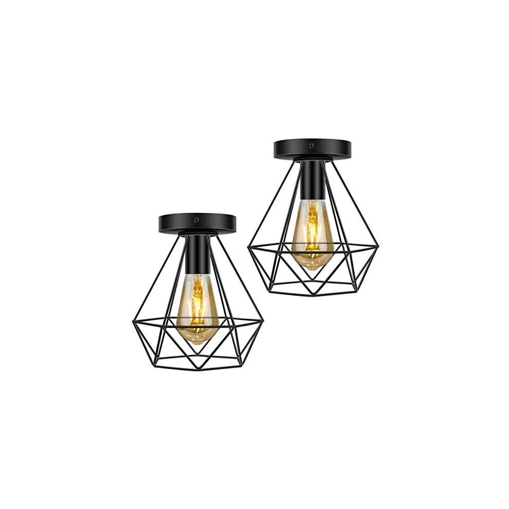 |2Pack| Industrial Ceiling Lights Flush Mount Ceiling Lighting E27 Hallway Light Fixture Metal Cage Ceiling Lamp for Bedroom Living Room Kitchen, 24CM
