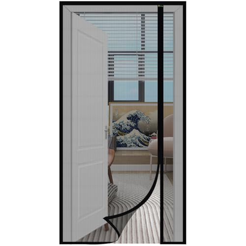 (As show, One size) THICKENED Mosquito Net Magnetic Door 80x200cm Very Dense Mesh Mosquito Net Magnetic Door Fly Curtain Insect Repellent, Black