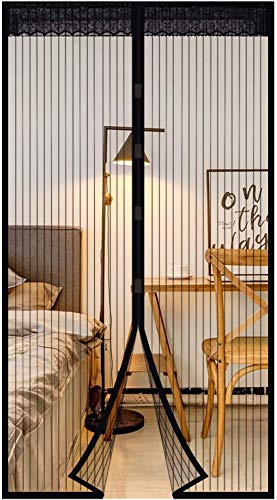 Magnetic Screen Door, Polyester Magnetic Door Fly Screen Curtain Magic Paste Curtains Super Quiet Stripes Encryption for Anti Mosquito or Anti Pest Magnetic Soft Door (Black, 90 x 220 cm)