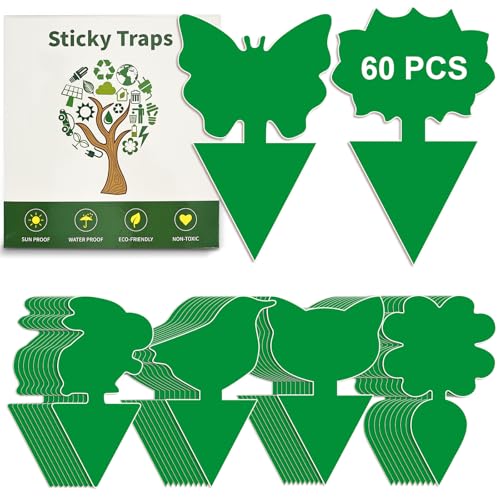 60 Pcs Fruit fly traps, Fly catcher Fly Strips Fungus Gnat Killer for Multiple Insects, Sticky Fly Traps for Home Use Indoor and Outdoor Child & Pet Friendly