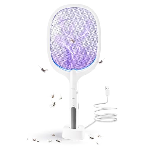XIAOGUDONG Electric Fly Swatter, 2 in 1 Electric Bug Killer USB Rechargeable, Purple Light Mosquito Killer for Indoor Home Office Backyard Patio Camping.,c