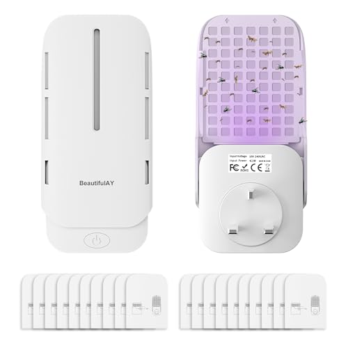 BeautifulAY Fly Trap/Moth Killer 2pack, Plug-in Flying Insect Traps - Sticky Flies Catcher for indoor use - Targeting Moths & Various Species in Household Flies, Midges, Gnats, Mosquitoes and more