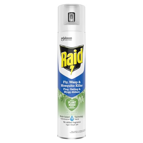 Raid Plant Based Wasp & Mosquito Killer, Aerosol Fly Killer Spray For Indoor Use, Made with Naturally Derived Botanical Ingredients, 300 ml