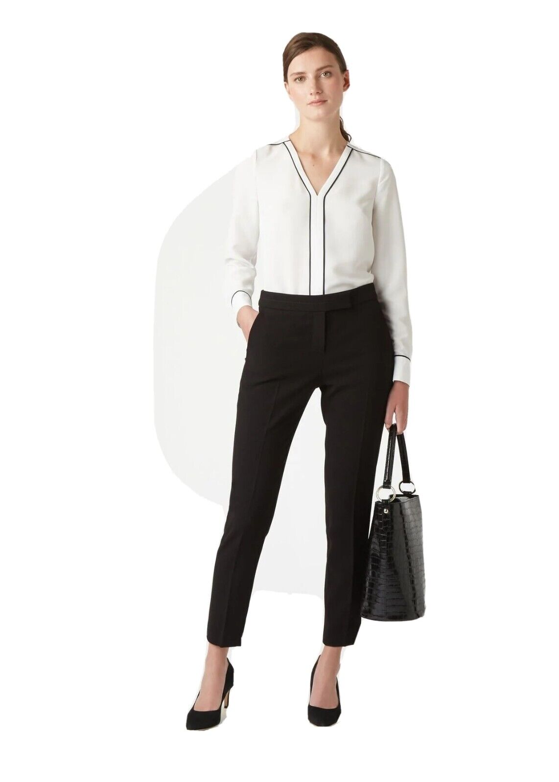 HOBBS Ladies Black Zip Fly Tapered Leg Pleated Anne Trousers Size UK 6 RRP £99