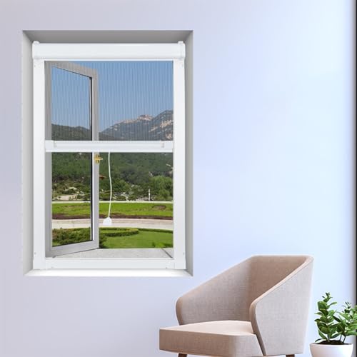 Aeovot Custom Window Fly Net Screens for Windows - Roll-Up Pull-Down Mosquito Net Window Insect Screen Mesh with Aluminum Alloy Frame, Anti-Mosquito Roller Blinds