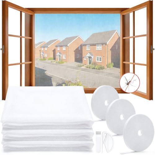 Window Netting for Insects, 3 Pack Self-Adhesive Fly Screens for Windows, DIY Cut to Size Bug Mosquito Net, 130x150CM Window Screen White Window Mesh Insect Screen Curtain, Fitted to Multiple Windows
