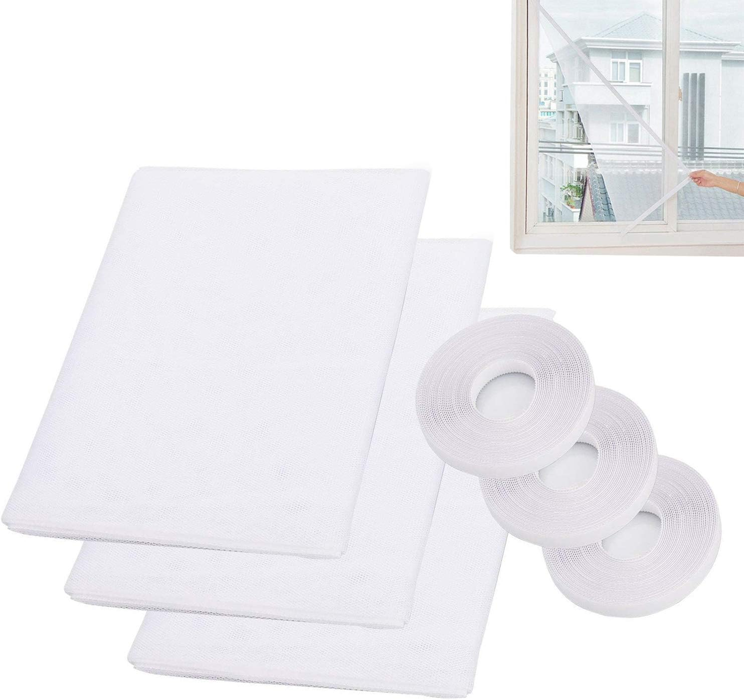 PHOGARY Mosquito Net for Windows, [Upgrade] 3 Fly Screens Window Mesh 1.3mx1.5m Insect Netting Bug Bee Mosquito Protector with 3 Tapes White