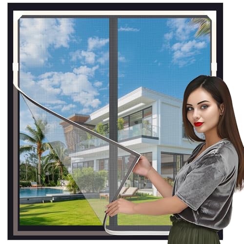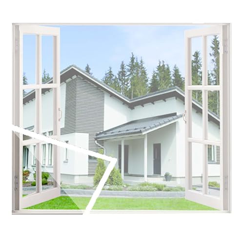 AUXHCYL Fly Screens for Windows - Magnetic Net Window Max 120 x 110cm, Adjustable Fiberglass Mesh, Insect Window Screen to Keep Bugs, Flys and Mosquitoes Out(White Frame Gray Mesh)