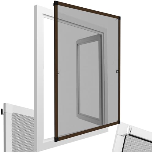 TecTake® Fly Screen for Windows, Window Screen with Aluminium Frame & Fibreglass Insect Mesh, Weather- & UV-Resistant Window Net with Easy Installation, Can Be Cut to Size - Brown, 100 x 120 cm