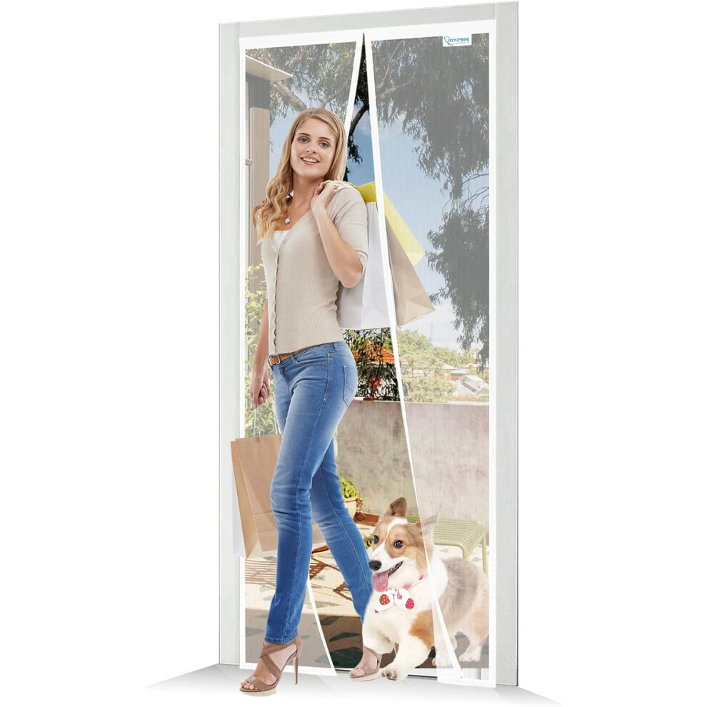White Screen Doors with Magnets 80 x 200 cm, Fly Curtains for Doors,Door Fly Screen, Magnetic Door Screen,Door Curtains to Stop Flies