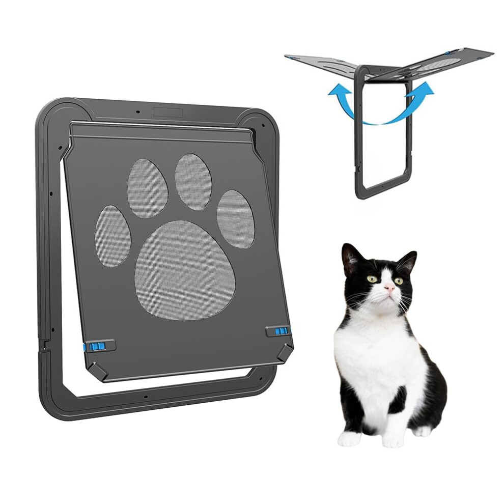 KOMUNJ Pet Flap Fly Screen for Doors Windows with Magnet and Lock Cat Door Fly Screen Door with Cat Flap for Medium Small Dogs and Cats