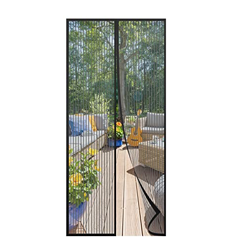 Fillis Magnetic Fly Screen for Doors 90x210cm, Side Opening Fiberglass Door Curtains Anti Mosquito Mesh with Full Frame Hook and Look, Keep Insects Out