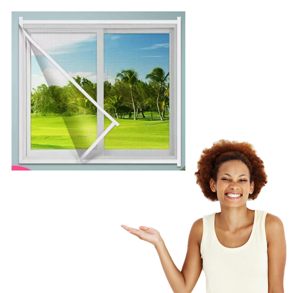 Adjustable Fly Screen for Windows, Fine Mesh Design with Premium PP Mesh and Double Reinforced Edges, Easy To Install Self-Adhesive Insect Screen for