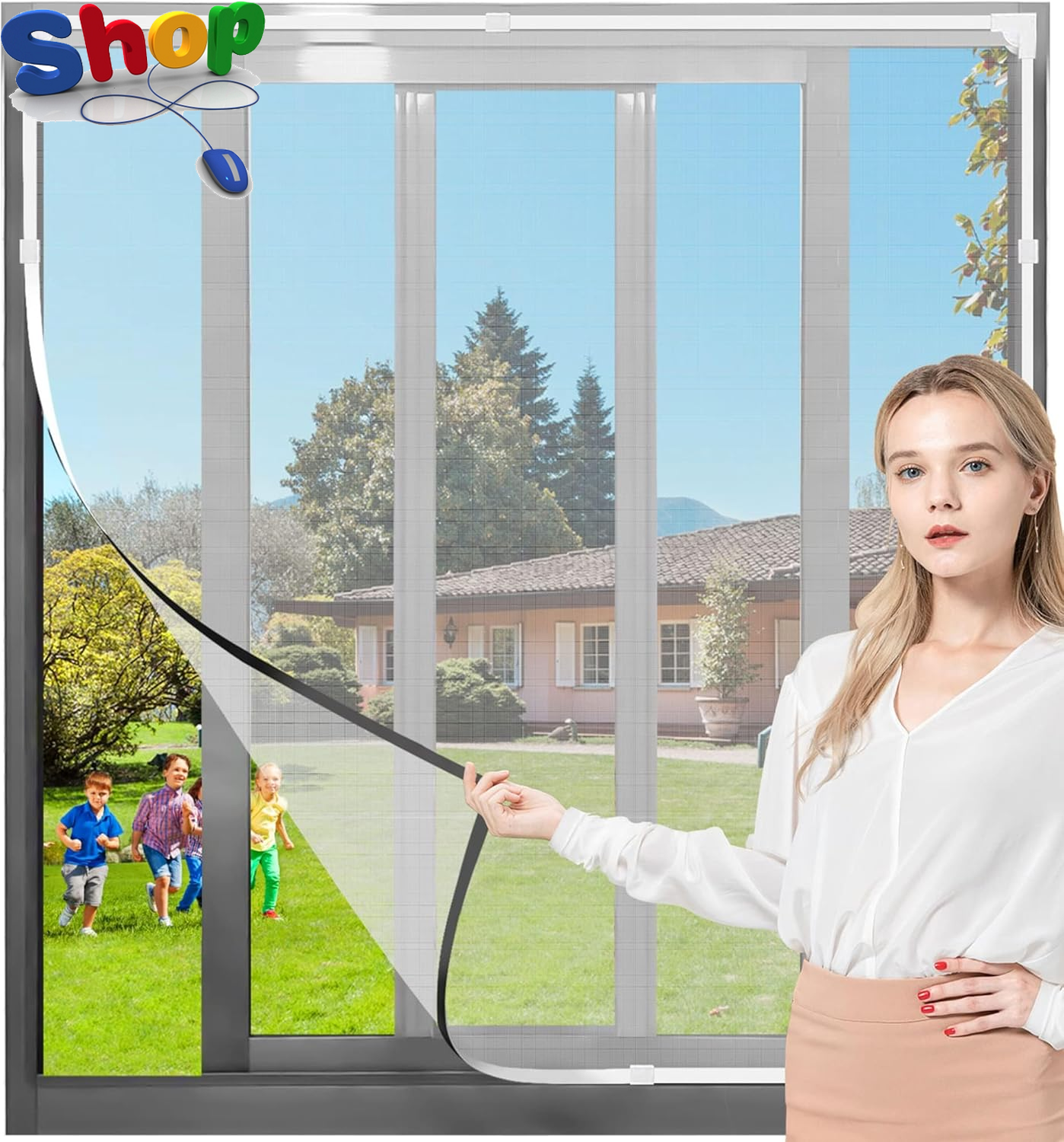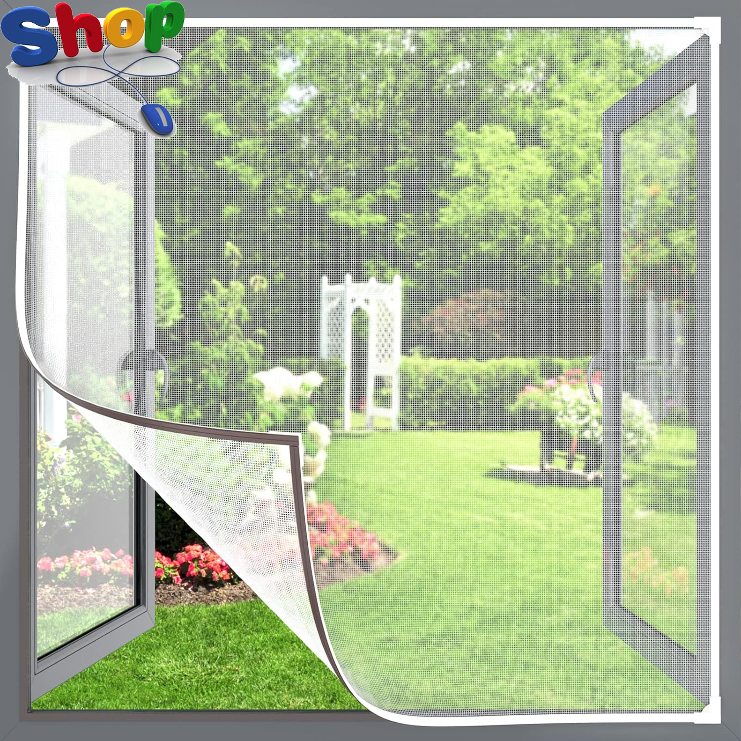 HOFUDON Adjustable Magnetic Fly Screens for Windows, Fit Up to 150x180cm, DIY Fiberglass Insect Mesh for Mosquito Net & Bug Screen, Full Frame Magnetic Strip White Frame White Mesh