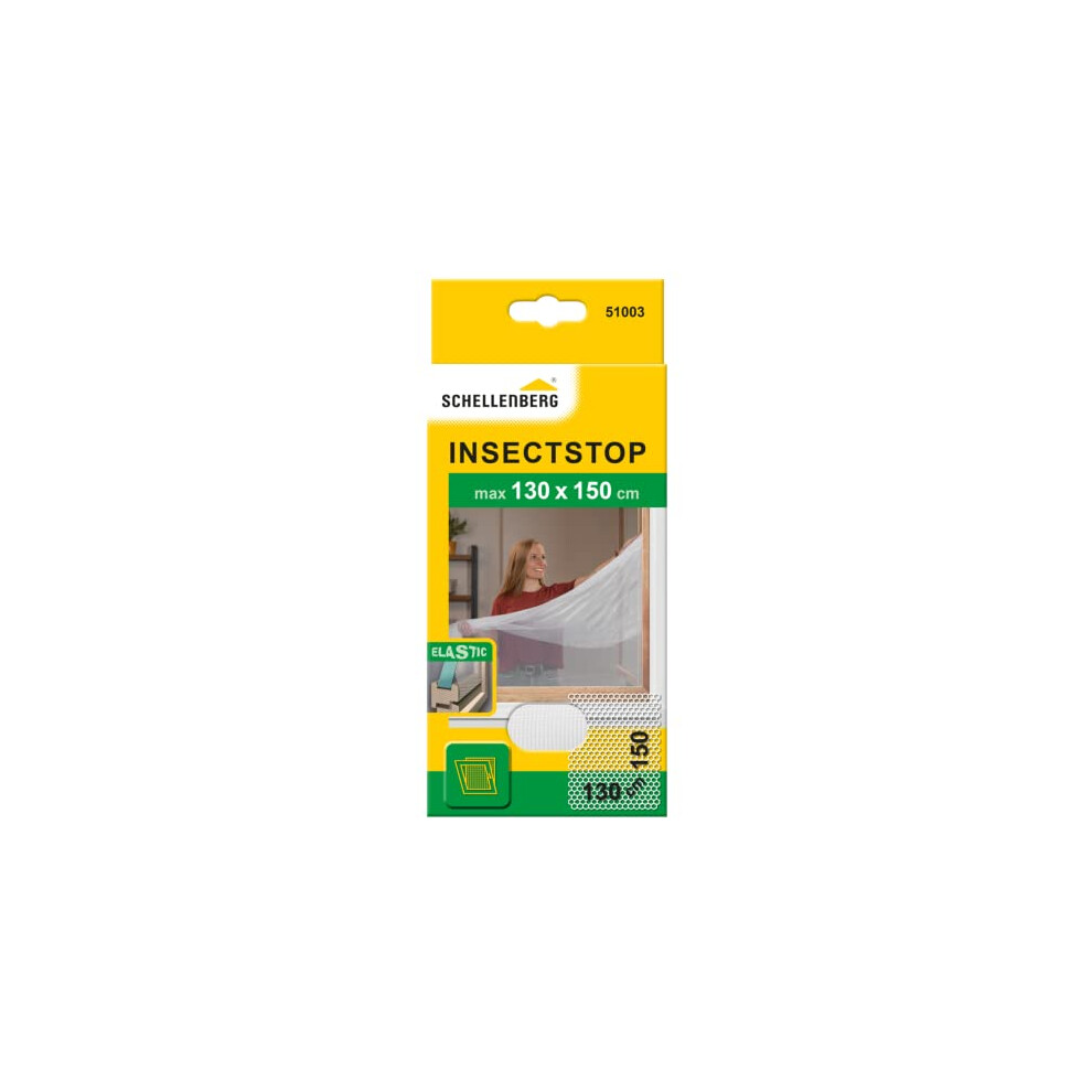 51003 Elastic Fly Screen for Windows with Weather Legs No Drilling Required Includes Mounting Tape 130 x 150 cm White, Insect, Mosquito Protection max