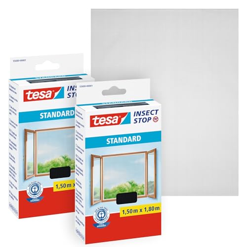 tesa Insect Stop Hook and Loop Standard for Windows - 2-Pack - Self Adhesive Window Fly Screen - Cut to Desired Size - in Anthracite, 2X 150 cm x 180 cm