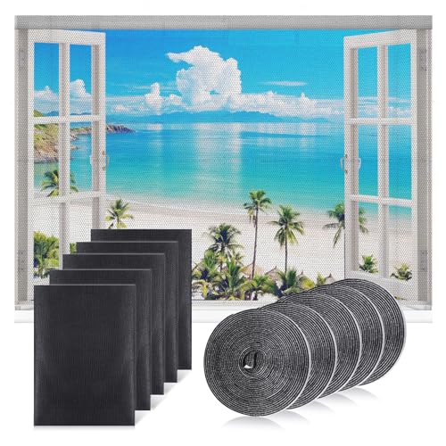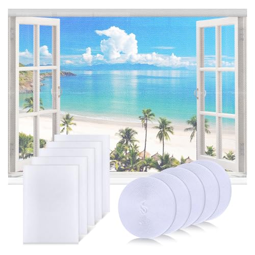 5 Pack Window Fly Screen, DIY Mosquito Net Window 130*150cm, Self-Adhesive Window Screen Mesh with 5 Roll Sticky Tape, High-density Fly Screens for Windows, Insect Screen Window Nets to Keep Bugs Out