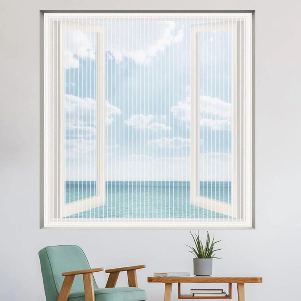 Magnetic Window Screen,UtauHom Fly Screen for Windows Max Size 120 x 130cm,Fiberglass Mesh Easy Installation Prevents Insects/Flies/Mosquitoes from Entering The Room(White Frame with White Net)