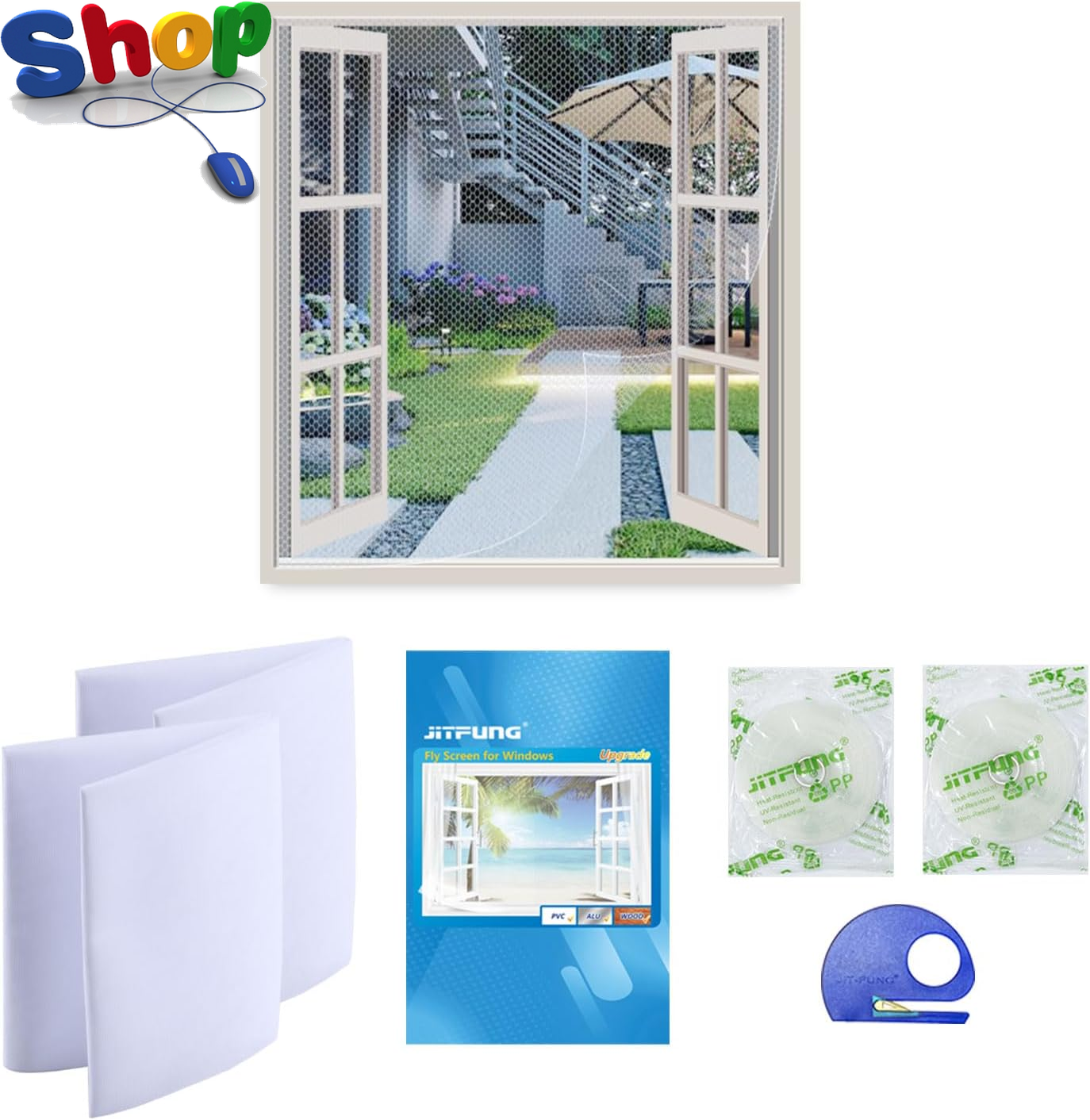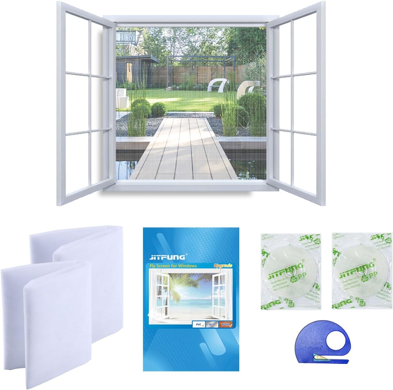 JIT-FUNG DIY Fly Screen for Windows, 2 130*155cm (Set of 2), White (Square)