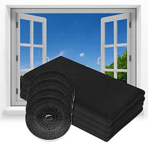 flintronic Window Screen Mosquito Netting, 4 Pack Self Adhesive Window Fly Screen, 130 x 150 cm Fly Screens for Windows with 2 Screen Repair Subsidy, Keep Bugs/Flys/Mosquitoes Out(Black)