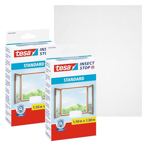 tesa Insect Stop Hook and Loop Standard for Windows - 2-Pack - Self Adhesive Window Fly Screen - Cut to Desired Size - in White, 2X 150 cm x 180 cm