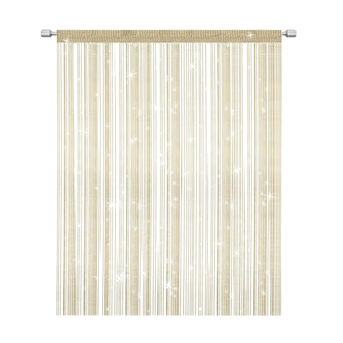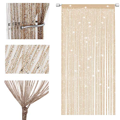 LLZ.COQUE String Door Curtains Panel Fly Screen Curtain Glitter Sparkly Divider Curtain Decoration for Doorways Windows - Champagne