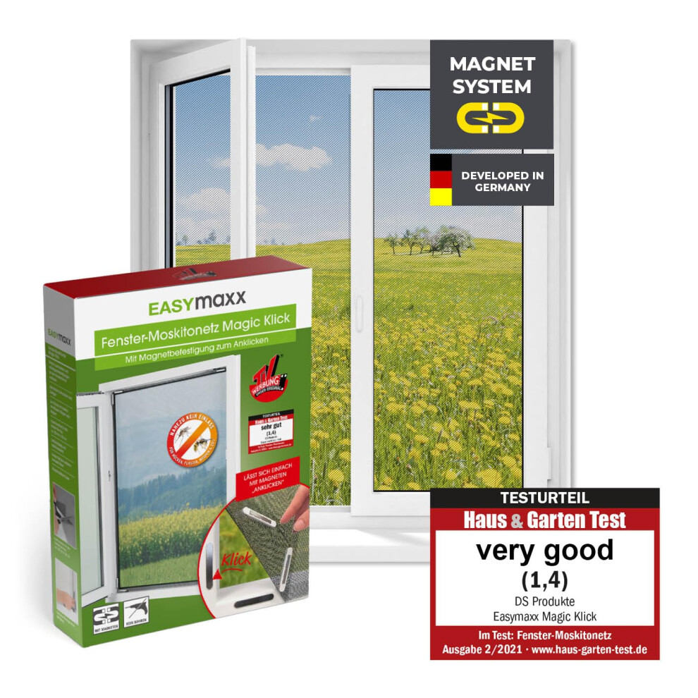 EASYmaxx Fly Screen for Windows with Magic Click | Mosquito net can be Cut to Size for All Windows up to 150x130 cm | Easy Installation with 12 Magnet