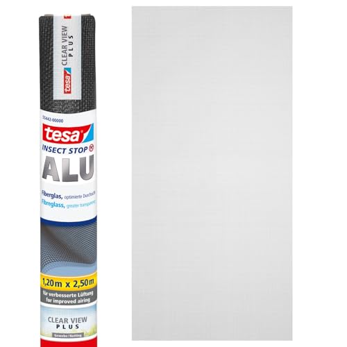 tesa Insect Stop Aluminium Screen Replacement Roll for Fly Screen - Mosquito Net - for Windows and Doors - Replacement Roll 120 cm x 250 cm, Grey