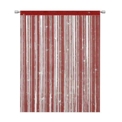SULIVES String Door Fly Screen Curtain - Elegant Divider Tassel for Home Décor, Doors and Windows - Wine Red (100x200cm)