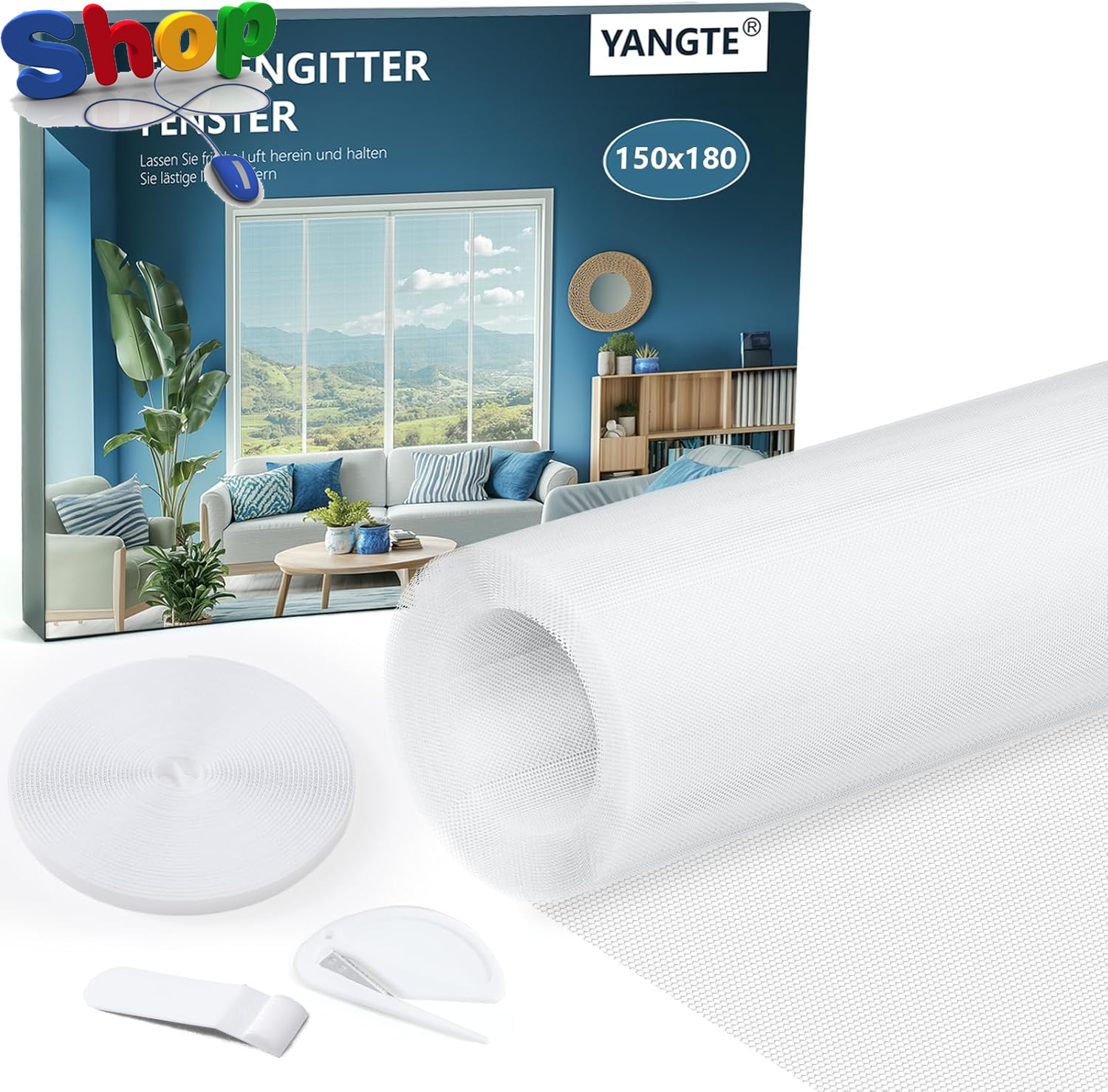 Flintronic Fly Screens for Windows, 150x180cm Insect Mesh, Adjustable DIY Fibergalss Mesh Fly Screen Window, Windows Doors and Patio Screens, Keep Flies, Mosquitoes&Bugs Out, White (Not Include Tools)