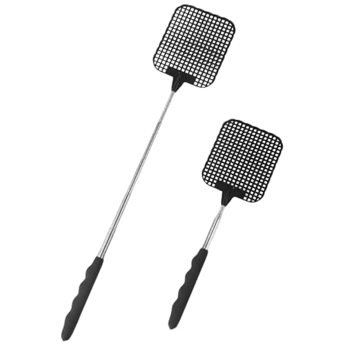 2-Pack Extendable Fly Swatters, Stainless Steel Telescopic Handle | Strong Flexible Manual Swat and Catcher Pest Control for Indoor and Outdoor Mosquitoes, Wasps, Bugs