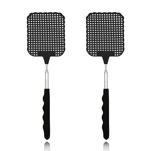 ILamourCar Extendable Fly Swatters 2 Pack, Strong Flexible Manual Swat Set, Manual Fly Swat Pest Control for Indoor Outdoor Mosquito Wasp Bug Insect (Black)