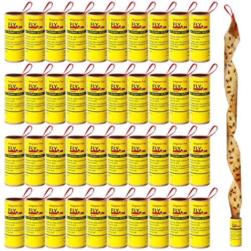 Fruit Fly Trap, 40 Pcs Sticky Fly Papers for Indoors & Outdoors - Eco-Friendly Hanging Ribbon Insect Catcher for Gnats, Mosquitoes