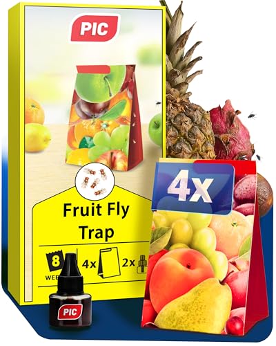 PIC Fruit fly trap and vinegar fly trap - 4x Glue Traps with 2 Attractant Containers, Effective Fly traps indoor for home use - Suitable for kitchen - Up to 8 weeks