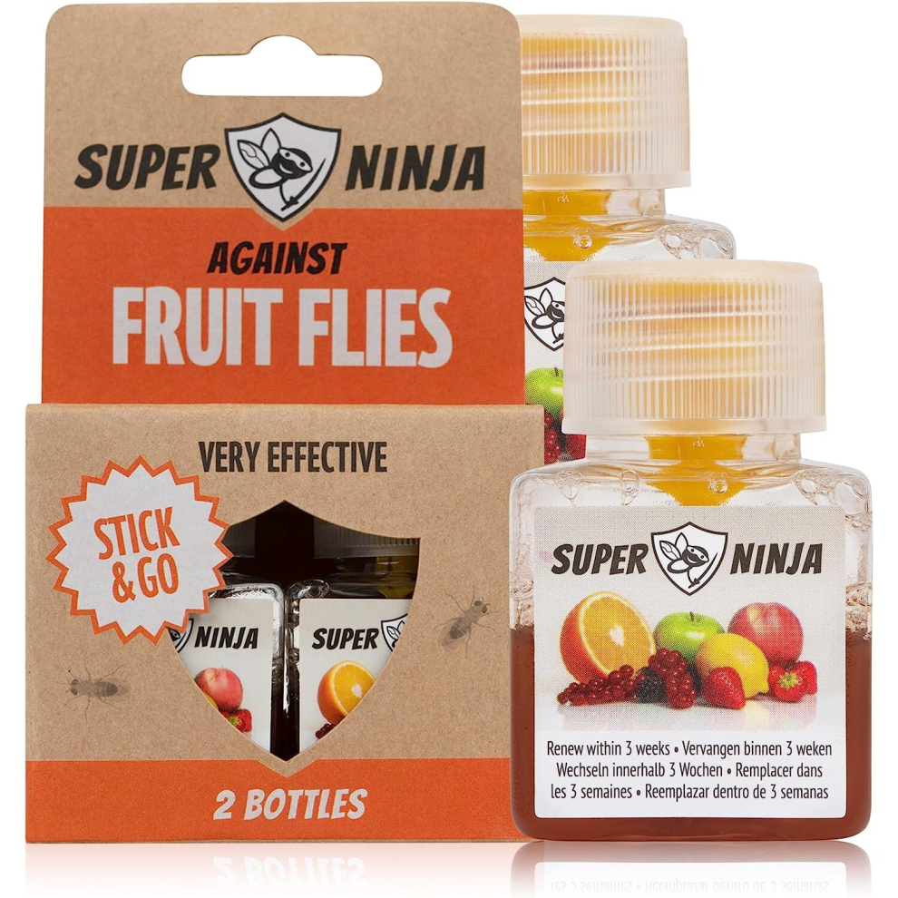 Super Ninja Fruit Fly Killer 2 Pack - Environmentally Responsible Highly Effective Ecological Traps Indoor User Friendly Up to 3 Weeks per Bottle