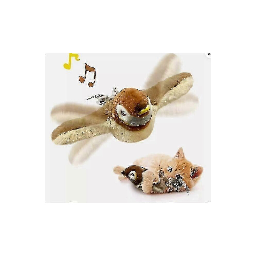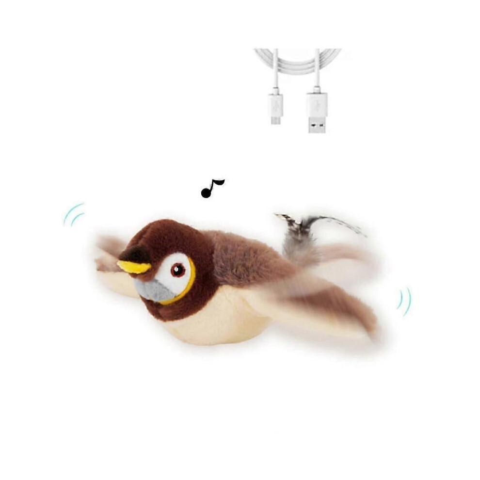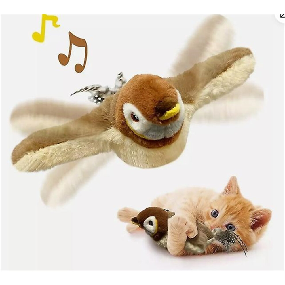 Flying Bird Chirping Bird Cat Toy Flying Interactive Cat Toy Bird Flapping Chirping Sparrow Cat Toy Bird Toy for Cats That Flies Brown