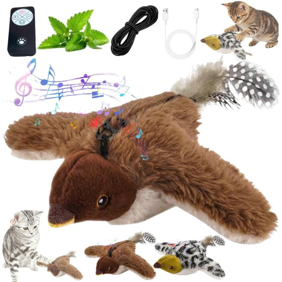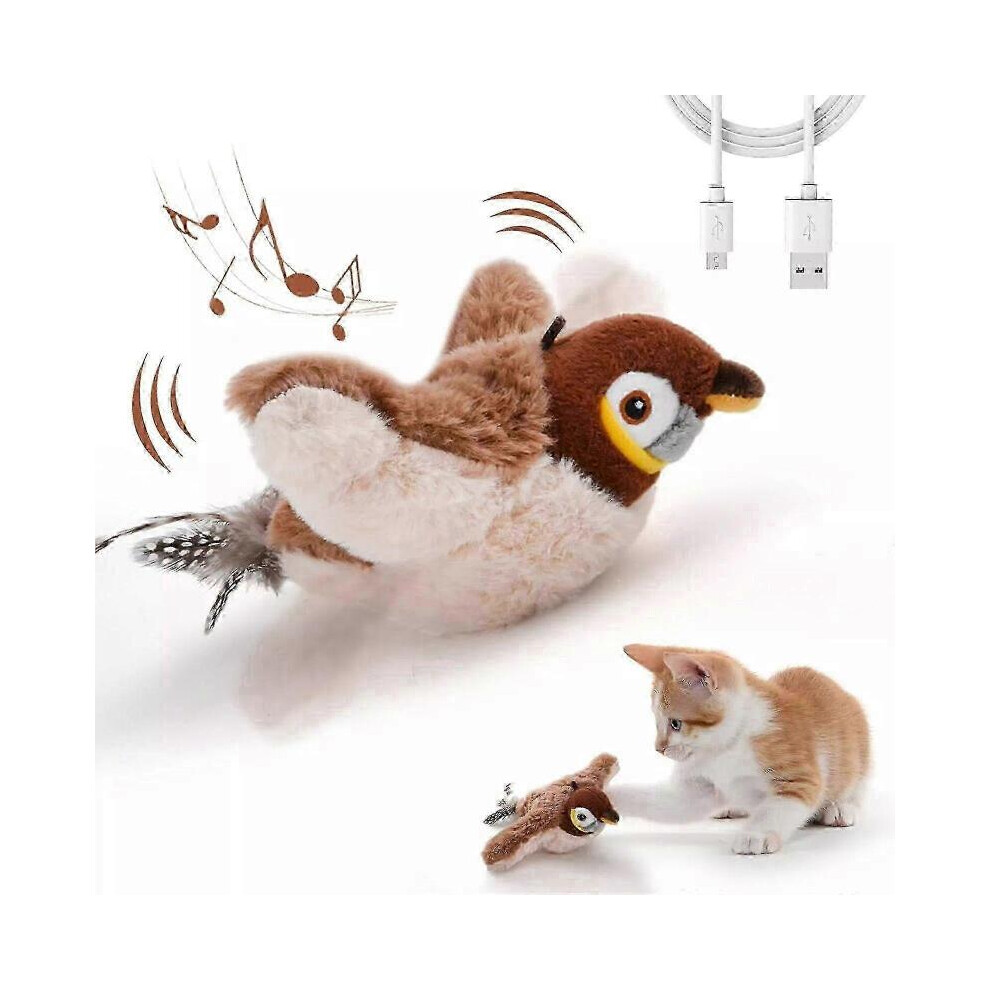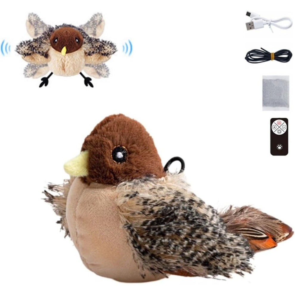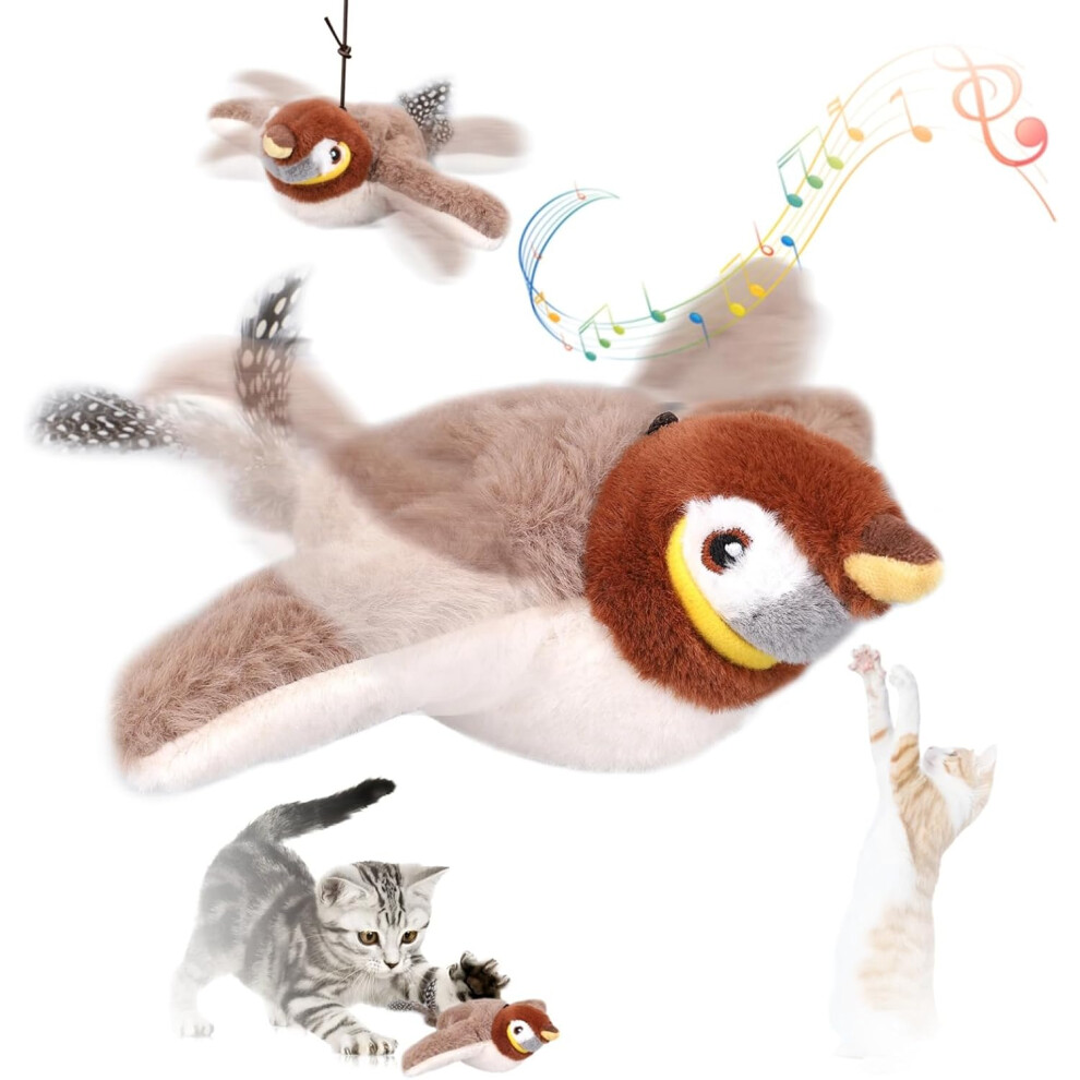 Flying Bird Chirping Bird Cat Toy Flying Interactive Cat Toy Bird Flapping Chirping Sparrow Cat Toy Bird Toy for Cats That Flies Brown