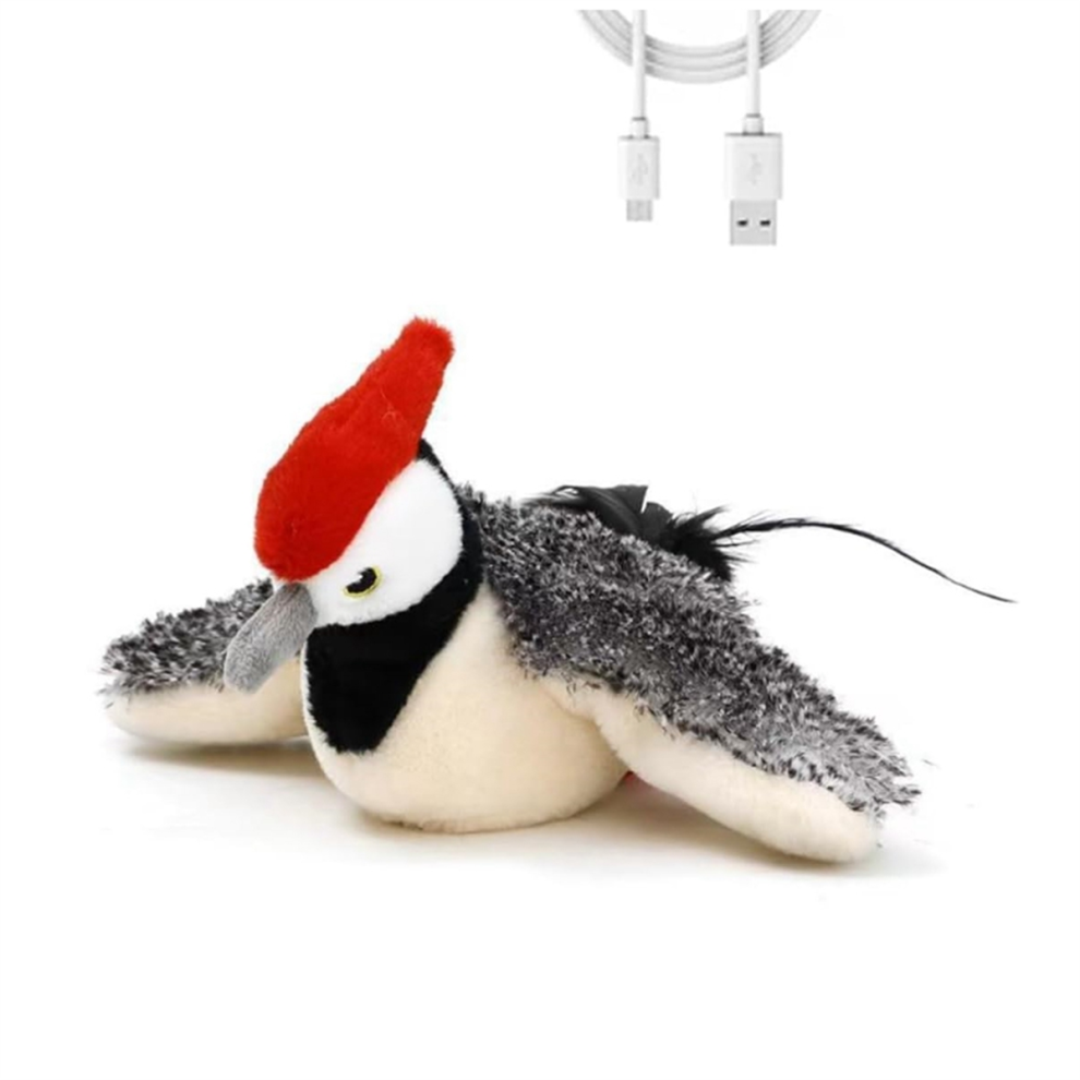 Flying Bird Cat Toy USB Charging - Plush Pet Sound Toy Detachable Cloth Cover Chirping Flapping