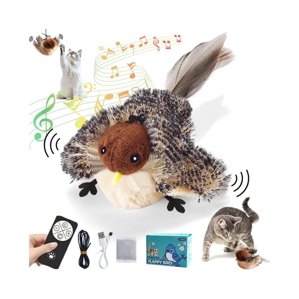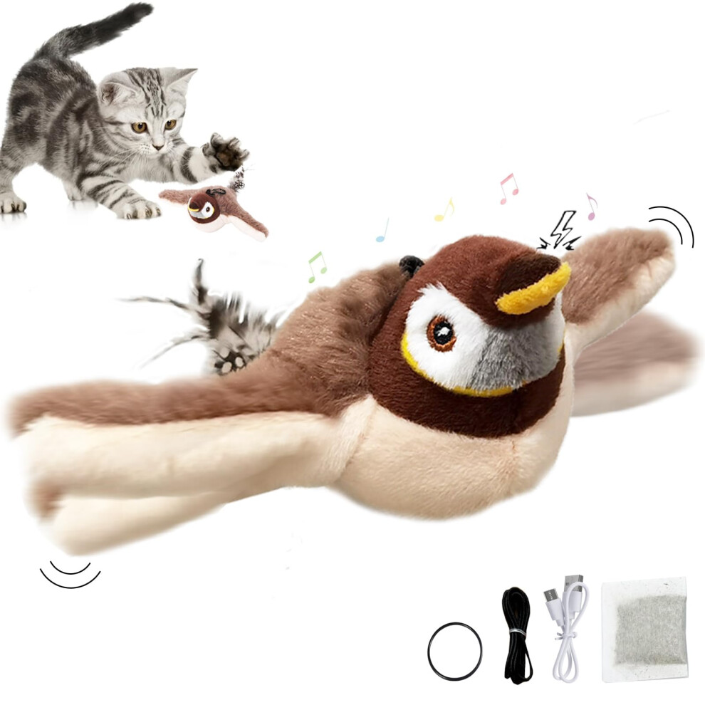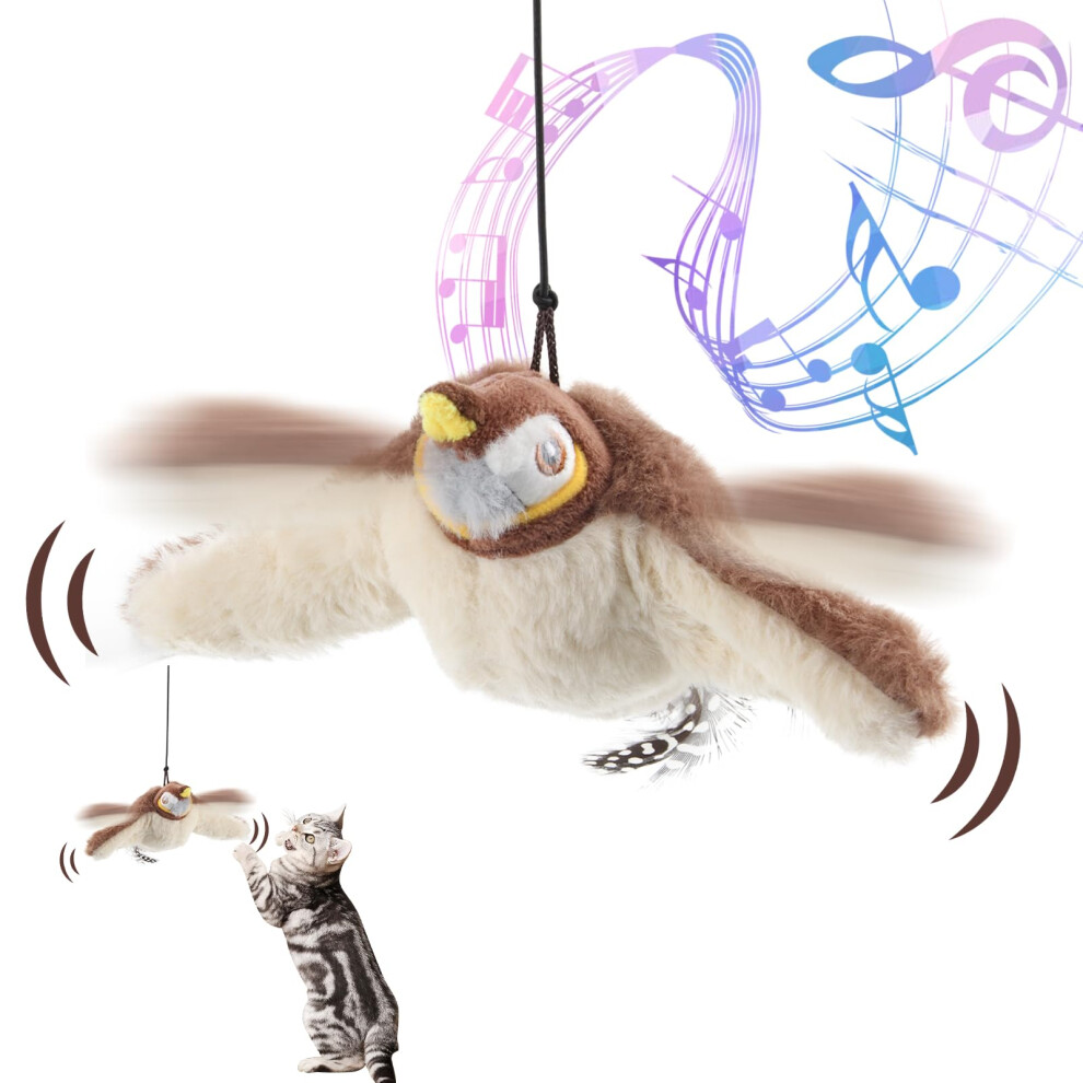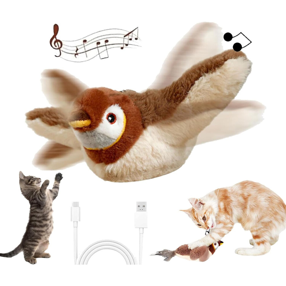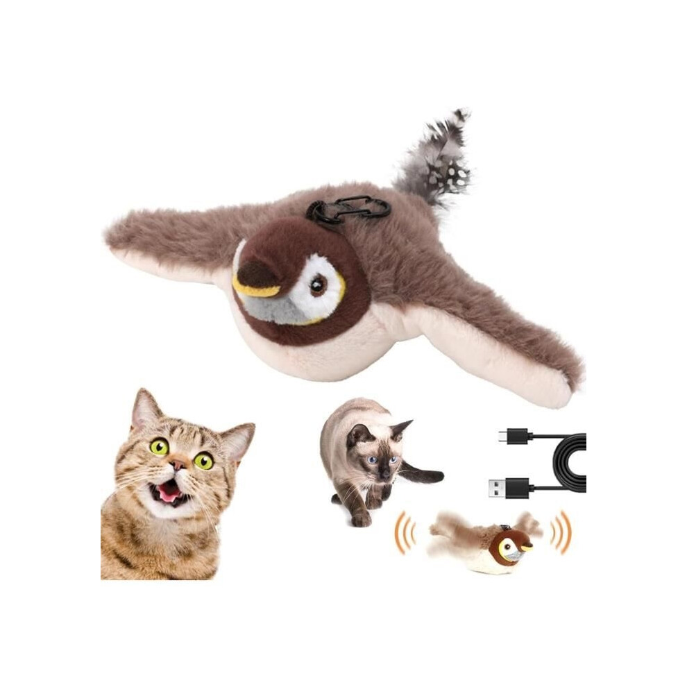Flying Bird Cat Toy, Bird Toy for Cats, Flapping Bird Cat Toy, Interactive Chirping (Sparrow)