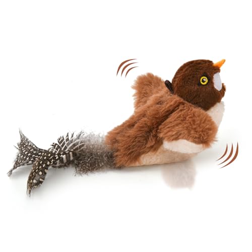 KreizyGo Cat Toys, Flapping Wings Sparrow, No Flying, Chirping Bird Toy, Touch Activated, Rechargeable