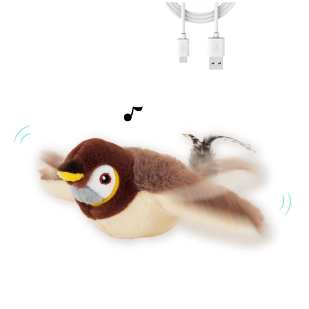 Flying Bird Cat Toy with Flapping Wings - Simulation Electric Sparrow for Hunting Play